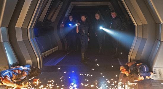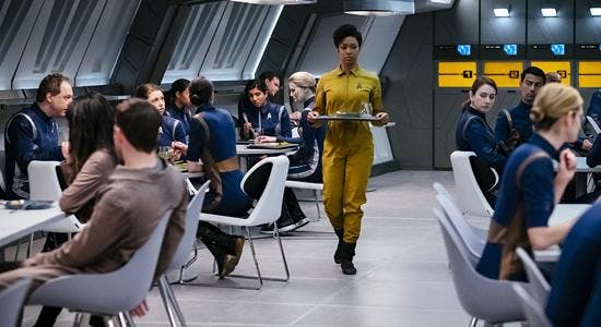 Lt. Stamets is deeply upset about the gruesome death of his friend, science officer Straal, and he seems to have little patience for anyone around him, particularly Burnham. But he'd better get used to her, since she's on the Discovery to stay. Did you catch the verbal Easter egg in the conversation between Stamets and Straal? The latter suggested they might win a Zee-Magnees Prize. Dr. Richard Daystrom won one on The Original Series (in "The Ultimate Computer"), and the TNG episode "The Schizoid Man" referenced that Dr. Ira Graves had won one as well.