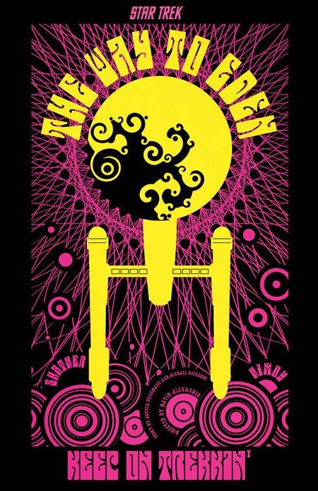 Ortiz: Yeah, absolutely. As a kid, I used to be obsessed with black-light posters by The Third Eye company during 1970's. I knew that I wanted to create a black-light poster for this series and naturally “The Way to Eden,” with its hippie theme, seemed perfect. Depending on the ink used to print this one, I'm not sure that it will work, but I can't wait to try it out.