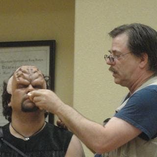Criss Wiebe, body and makeup artist, demonstrated how to accomplish professional makeup with water-activated paraben-free face paint, by painting the faces of children and adults. Speaking of makeup and Klingons, word has it that an American couple who drove across the Canadian border was stopped for a routine security check. After opening the trunk, the customs officer was surprised to find a Klingon bat’leth, costumes and makeup. After several questions and some questioning looks, the couple was gratefully allowed to continue their journey to Vulcan.